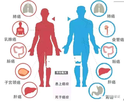 在我國,癌細(xì)胞最頻繁“光顧”的人體組織,位居男性發(fā)病率前十位的分別是,肺、胃、肝、食管、大腸癌、膀胱、胰腺、腦、淋巴、腎;女性為肺、乳腺、大腸、胃、肝、食管、卵巢、宮頸、胰腺、腦。“可以說,這十種腫瘤占據(jù)了所有腫瘤類型的80%以上。