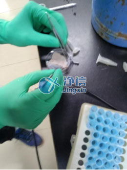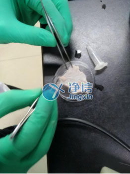 皮膚去脂肪層鋪展開效果 取材,準(zhǔn)備放入適配器液氮冷凍